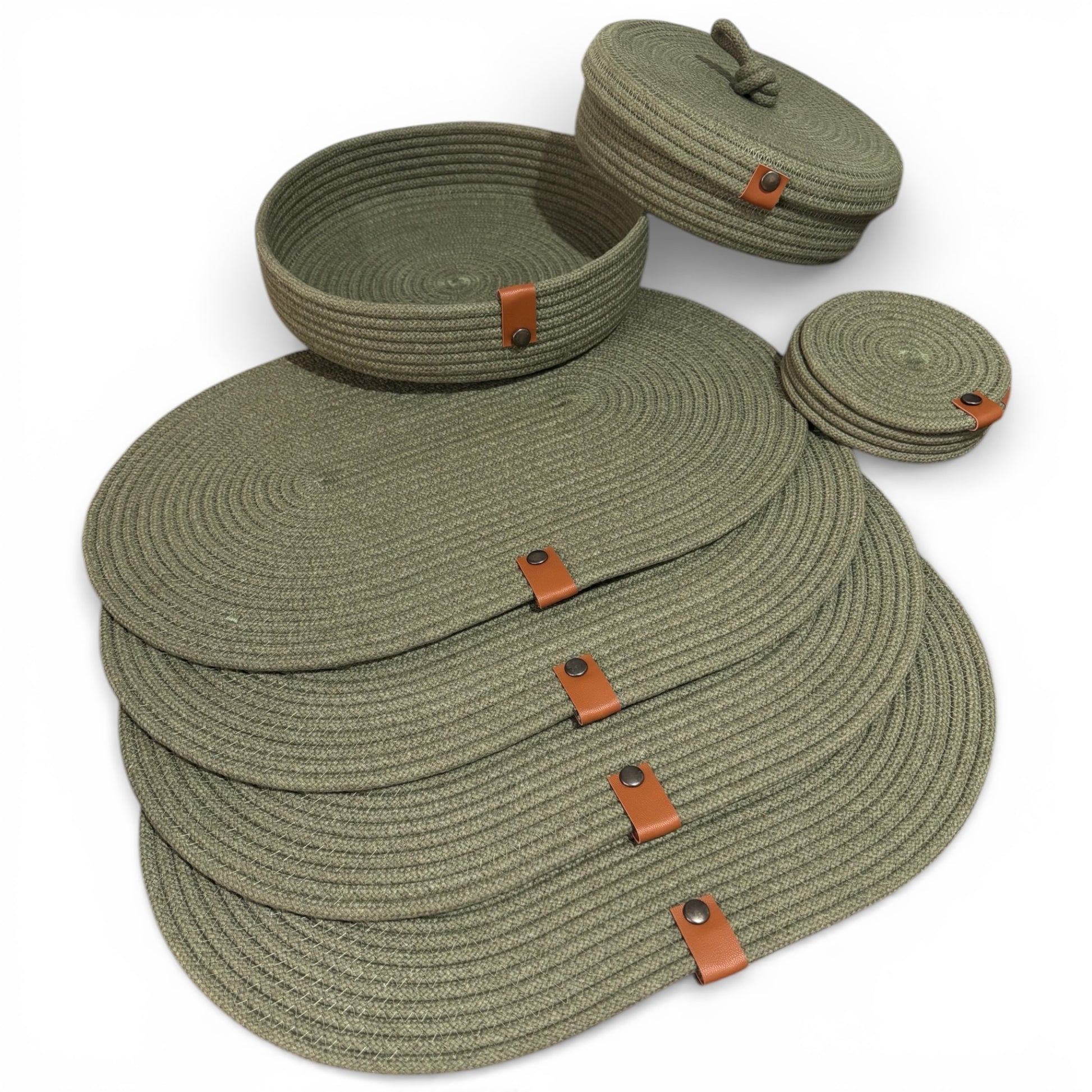 Set de mesa ovalado verde olivo